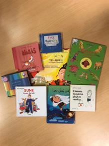 På förskolan och biblioteket finns böcker på många olika språk. Det finns bilderböcker, böcker med parallelltext och ljudböcker.
